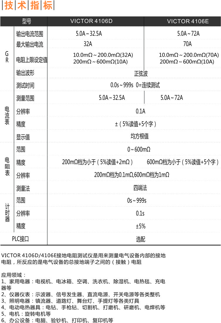 產(chǎn)品型號(hào):VICTOR 4106D 4106E 操作方式:自動(dòng)量程產(chǎn)品名稱:接地電阻測(cè)試儀