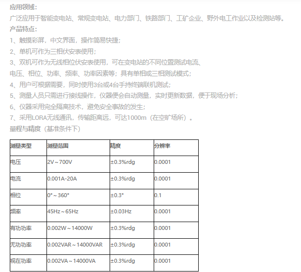 VICTOR 4600B無線三相相位伏安表用于無線同步測量變電站二次回路中不同測量點的電壓幅值、電流幅值、電壓相位、電流相位、頻率、功率等參數(shù),還能夠同屏顯示主從機的三相電壓和電流的矢量圖。無需臨時拉線,解決智能變電站中不同點電流電壓無法測量的問題。儀表由2臺手持測量終端組成,2臺終端均可設(shè)為主機或從機,產(chǎn)品操作簡單、使用方便、測量快速、穩(wěn)定、結(jié)果可靠。