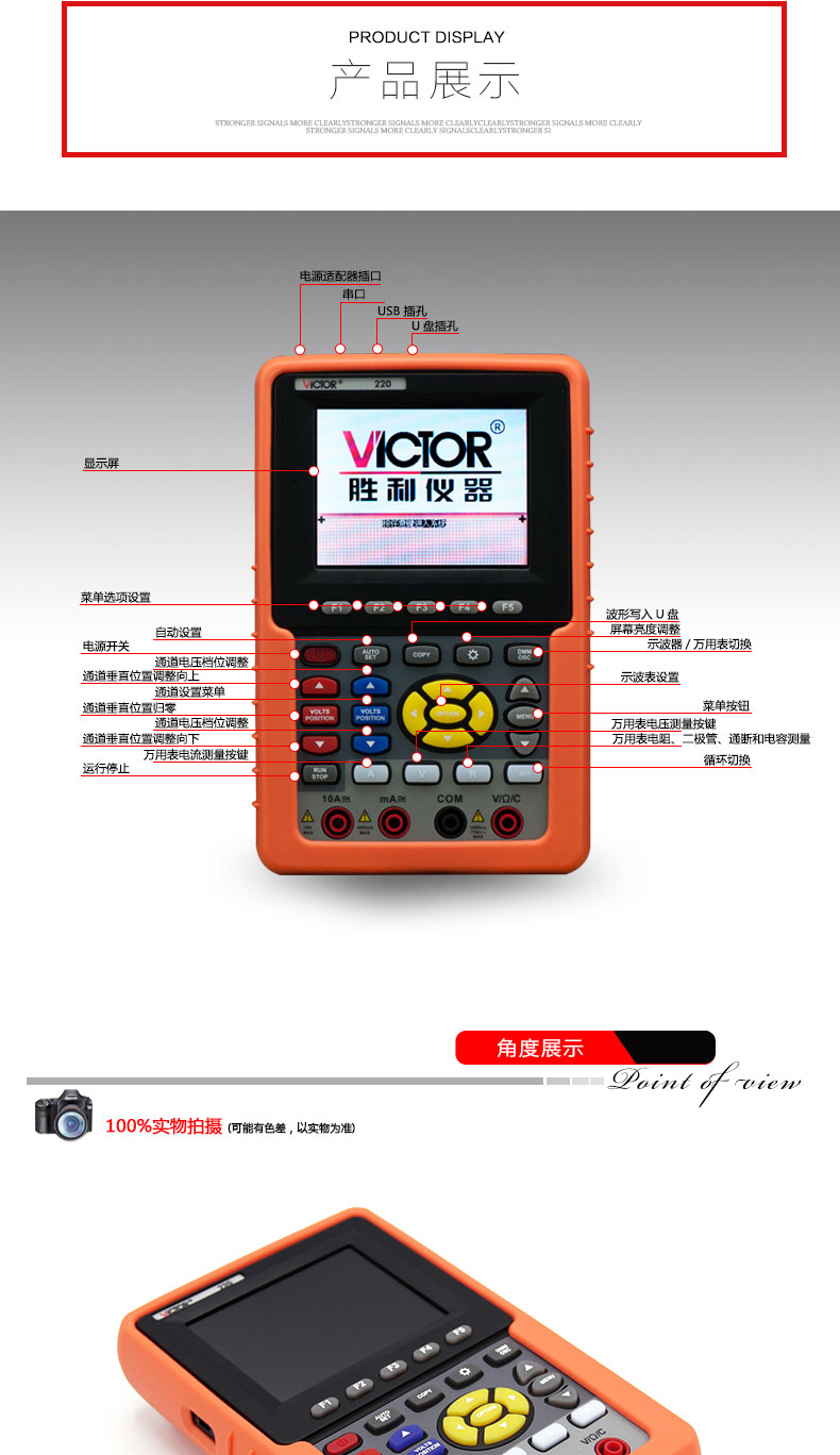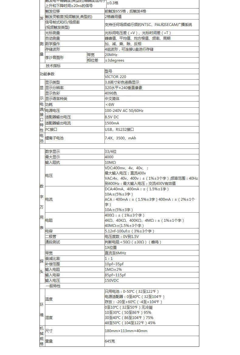 產(chǎn)品型號:VICTOR 220 操作方式:自動量程產(chǎn)品名稱:手持式示波表VICTOR 220