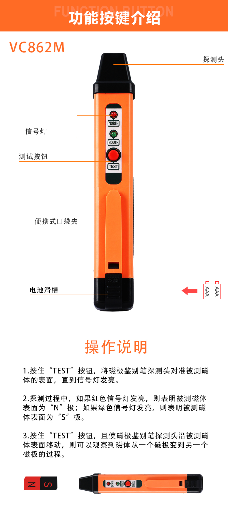 產(chǎn)品型號:VICTOR 862M產(chǎn)品名稱:磁級鑒別筆