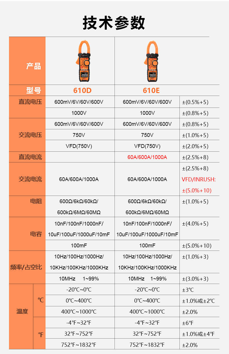 VICTOR 610D/610E鉗形表