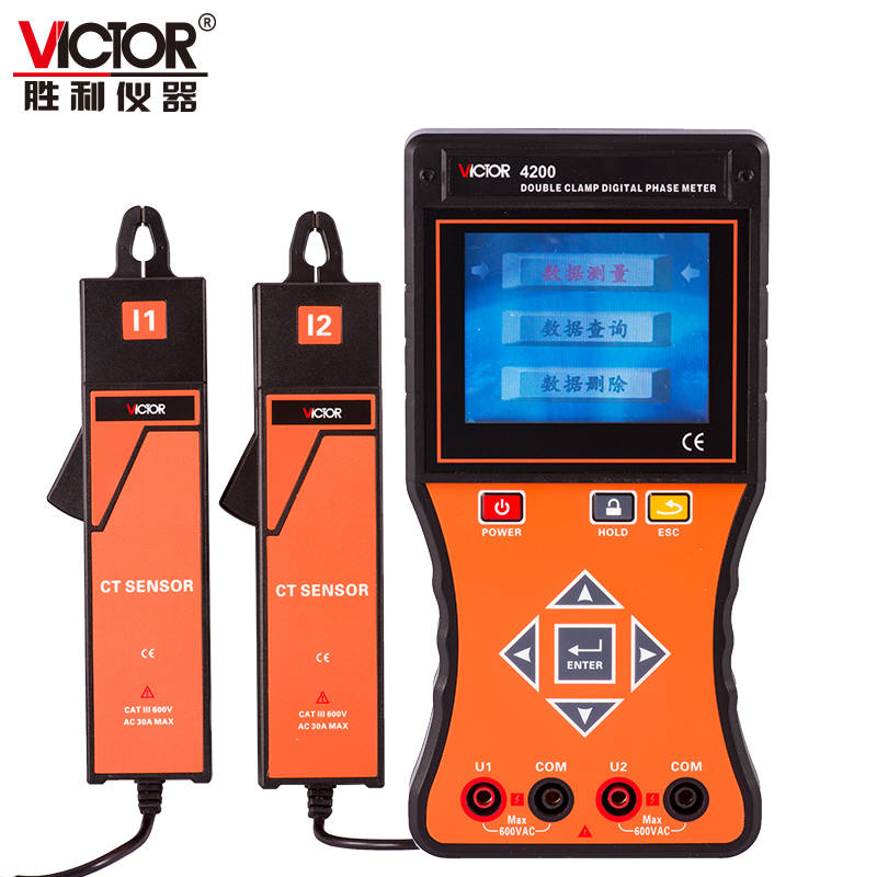 VICTOR 4200雙鉗智能相位伏安表是一款專為現(xiàn)場測試的多功能智能儀表,由主機、電流鉗(2把)、測試線(4條)等組成。主機采用3.5寸真彩液晶屏,圖形菜單界面顯示,所測參數(shù)同屏顯示,一目了然。電流鉗一體化手柄設(shè)計,便于操作,非常適用于排線密集的場所。儀表可以在被測回路不開路的情況下,同時測量兩路交流電壓、電流、電壓間相位、電流間相位、電壓電流間相位、頻率、有功功率、無功功率、視在功率、功率因數(shù),電壓電流相位圖指示,判別變壓器接線組別、感性、容性電路,測試二次回路和母差保護系統(tǒng),讀出差動保護各組CT之間的相位關(guān)系,檢查電度表的接線正確與否,檢修線路設(shè)備等,為用電檢查人員提供一種安全、準(zhǔn)確、便捷的智能儀表。適用于電力、石油化工、冶金、鐵路、氣象、工礦企業(yè)、科研院校、計量部門等。尤其適用于電能計費系統(tǒng)及繼電保護系統(tǒng)。
